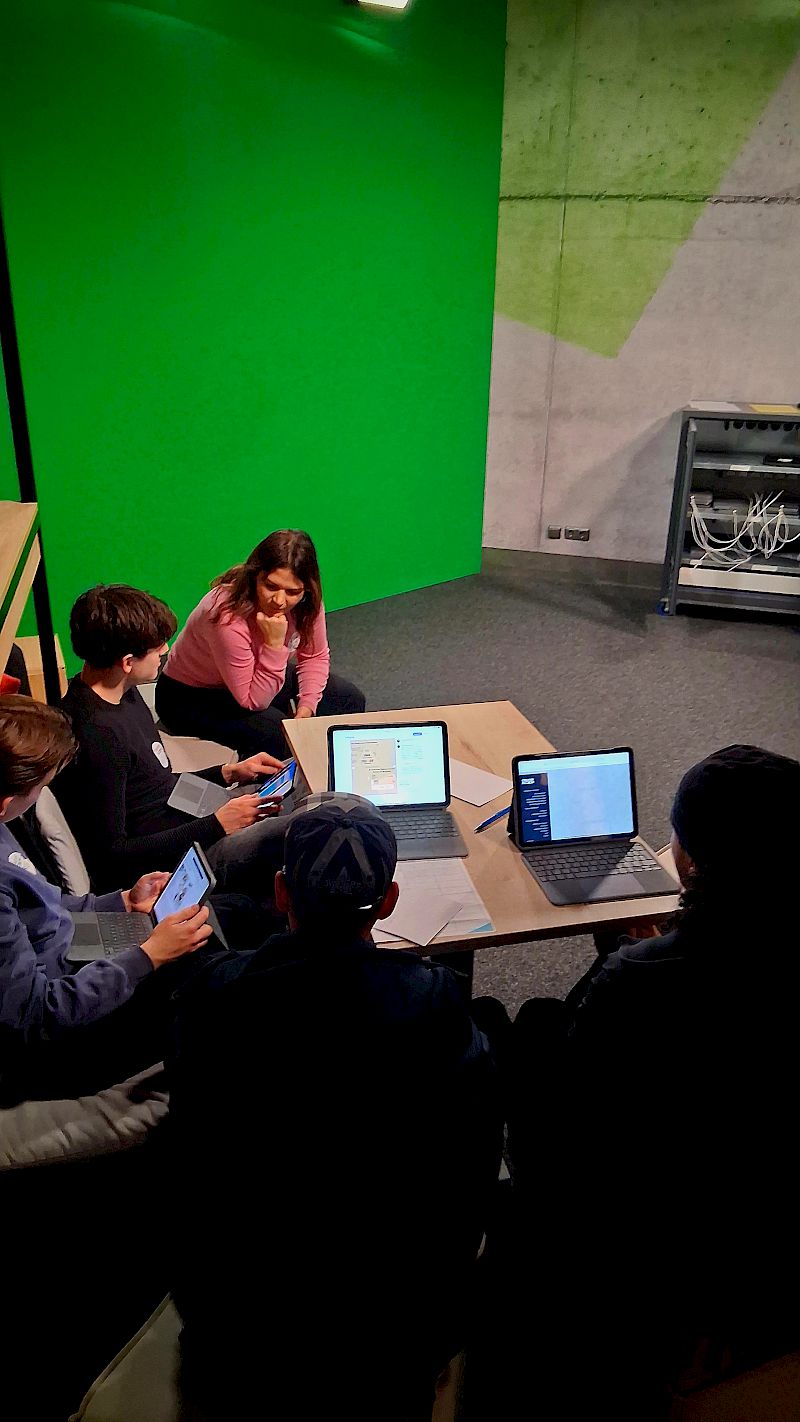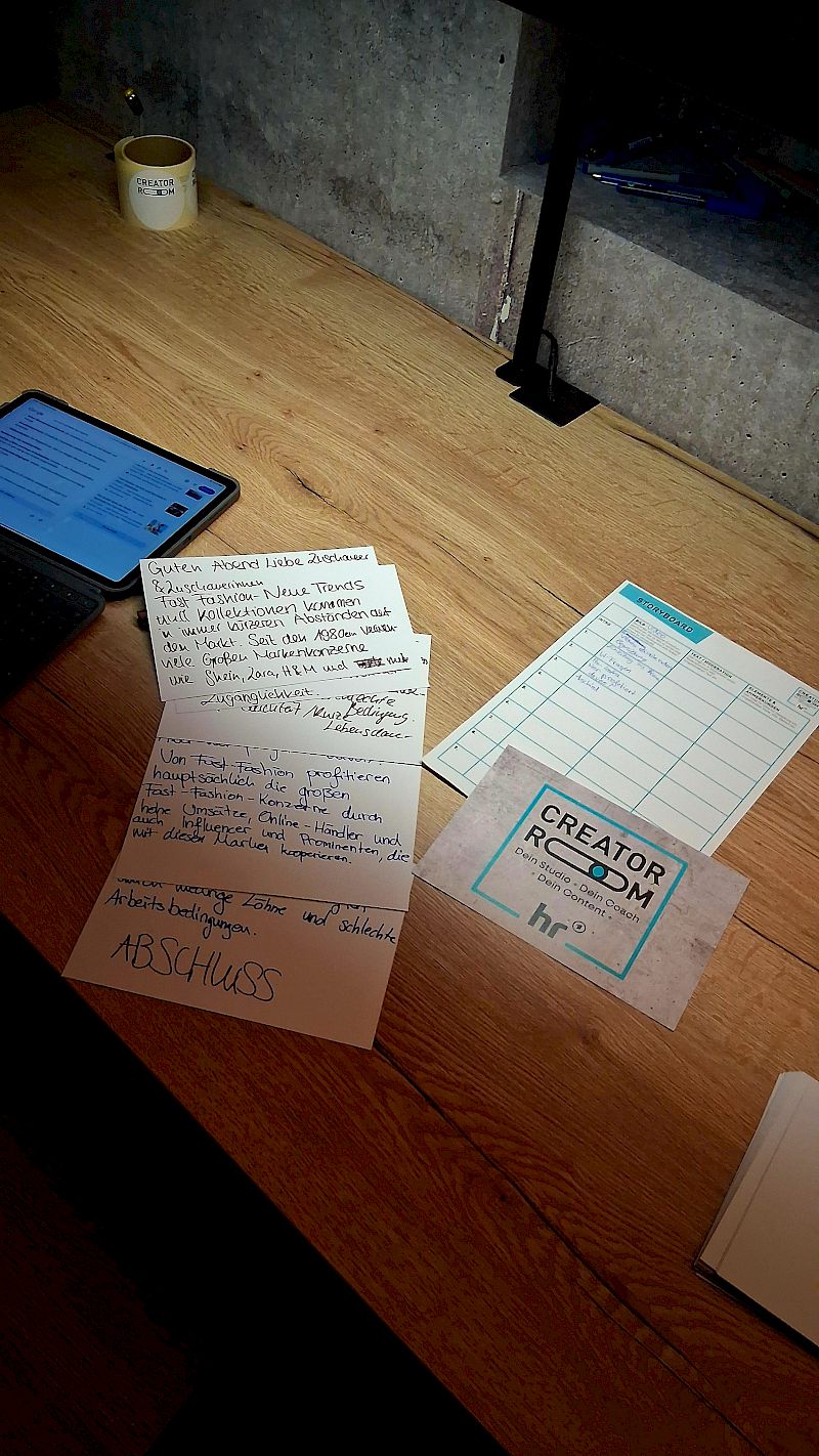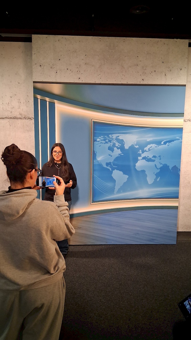Mit den Themenkomplexen „Fast Fashion“ und „Social-Media erst ab 16“ wurde sich journalistisch auseinandergesetzt, Themenschwerpunkte erarbeitet, Umsetzungsideen in kleinen Redaktionskonferenzen diskutiert, Storyboards vervollständigt und am Ende gefilmt, geschnitten und präsentiert. Die Begeisterung für die Entwicklung eigener Ergebnisse war währenddessen nicht nur durch die mehr als konzentrierte Atmosphäre spürbar, alle Schülerinnen und Schüler setzten sich tiefergehend mit den gewählten Themen auseinander und die Ergebnisse konnten sich allesamt sehen lassen.