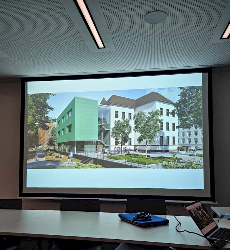 In einem anschaulichen Vortrag wurden die geplanten Maßnahmen vorgestellt und erläutert. Ein Brückenschlag soll es werden, zwischen der Bewahrung des historischen Erbes und innovativer Bauweise, die ein modernes Schulgebäude benötigt. Exemplarisch wird das historische Treppenhaus inklusive Turmspitze in ein lichtdurchflutetes Atrium integriert, im eigentlichen Schulgebäude sollen nach Abschluss der Arbeiten 16 Klassen in modernen Räumen eine neue Heimat finden. In diesem Zusammenhang sollen am Hauptstandort der JLS die Containerklassenräume weichen.