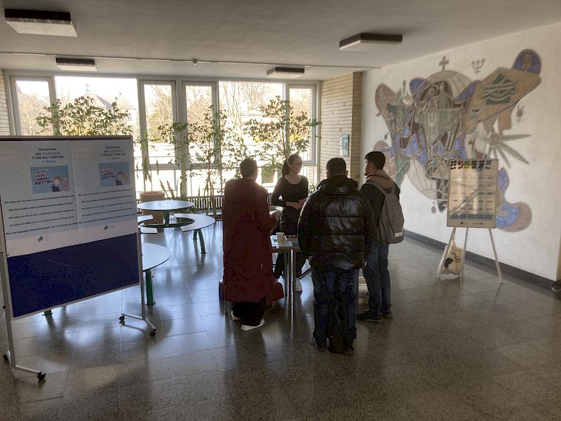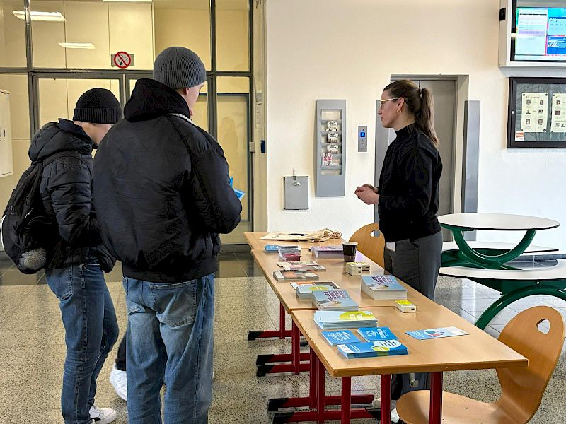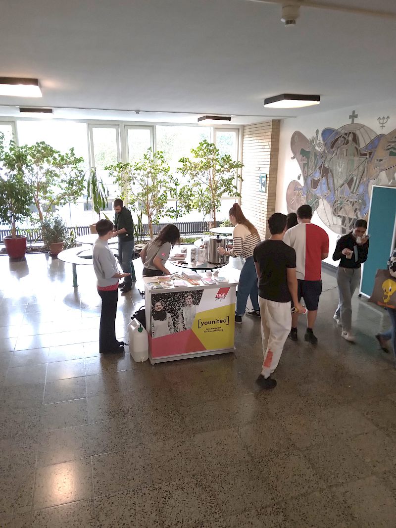 In den Pausen bestand für alle Mitglieder der Schulgemeinde die Möglichkeit zur Information am Infostand. Die wurde vielfältig genutzt und auch die Schülerinnen und Schüler der Speditionsklassen waren von der Motivation zum Mitmachen und Mitgestalten sehr angetan, sodass die DGB-Jugend sicher nicht zum letzten Mal an unserer Schule zu Gast war.