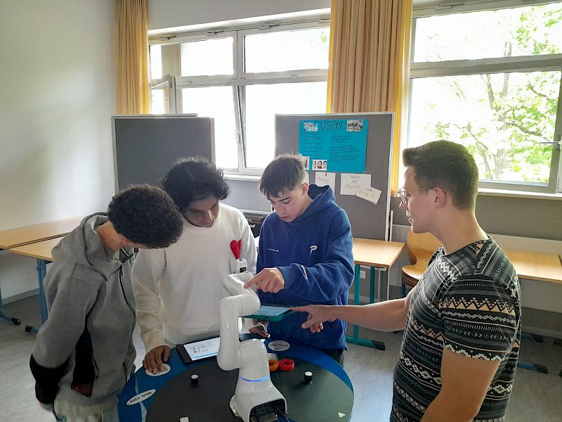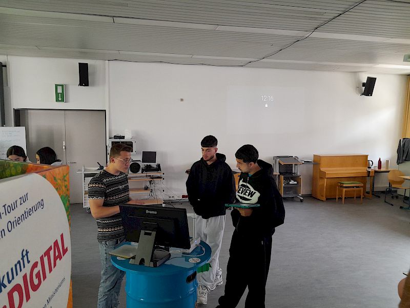 Dem Ansatz des explorienden Lernens folgend konnten sich die kommenden Berufseinsteiger, motiviert durch lebensnahe Beispiele, an insgesamt sechs Stationen mit dem Einsatz von digitalen Werkzeugen und KI-gestützten Abläufen vertraut machen. In Teams wurden die verschiedenen Aufgaben gelöst und es war deutlich zu erkennen, dass die erreichten und gemeinsam erarbeiteten Ergebnisse zu großem Staunen und einer weiter gesteigerten Neugier führten.