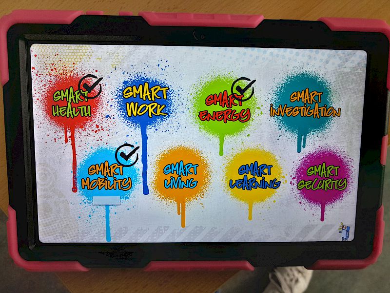 Dem Ansatz des explorierenden Lernens folgend, konnten die Schülerinnen und Schüler an unterhaltsamen und gleichzeitig lehrreich gestalteten Stationen die verschiedenen smarten Elemente erforschen, die unsere Welt schon heute, aber vor allem in der näheren Zukunft, erheblich verändern und verändern werden. Manch erhellendes Erlebnis, angereichert duch viele Fakten der begleitenden Coaches, rundeten die kleine Zeitreise im schulischen Alltag ab.