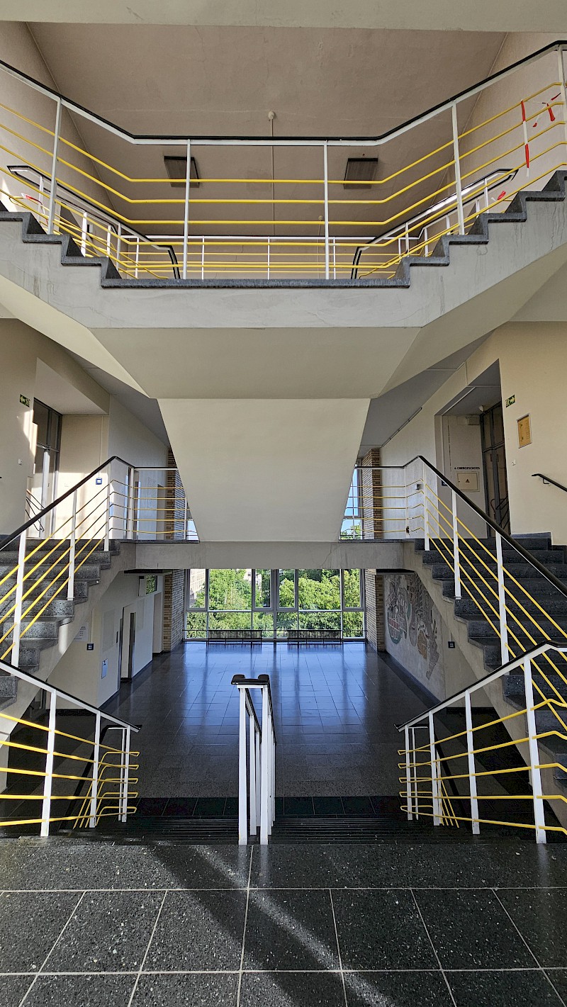 Ebenso blieben hunderte Schülerinnen und Schüler nebst Teilen des Kollegiums am alten Stammsitz und haben dort mittlerweile den Schulbetrieb mit großer Neugier, veränderter Raumverteilung und manch weiterer Neuerung, erwähnt sei hier nur das neue Lehrerzimmer, wieder aufgenommen.