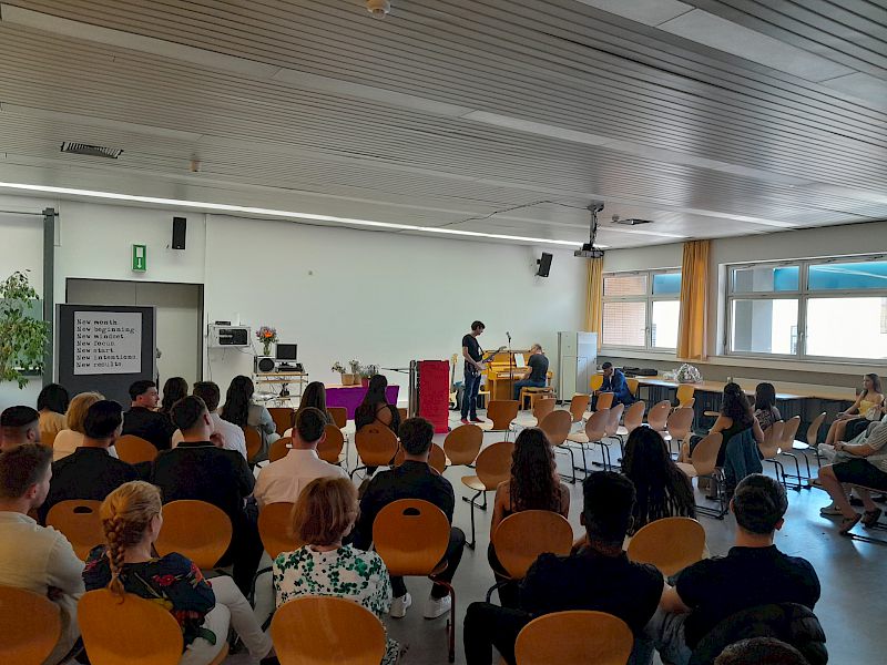 Auch die musikalische Begleitung und die Abschlussrede des Jahrgangsbesten sorgten bei den über 60 anwesenden Absolventinnen und Absolventen, den Angehörigen sowie Lehrerinnen und Lehrern für ein eindrückliches Erlebnis.