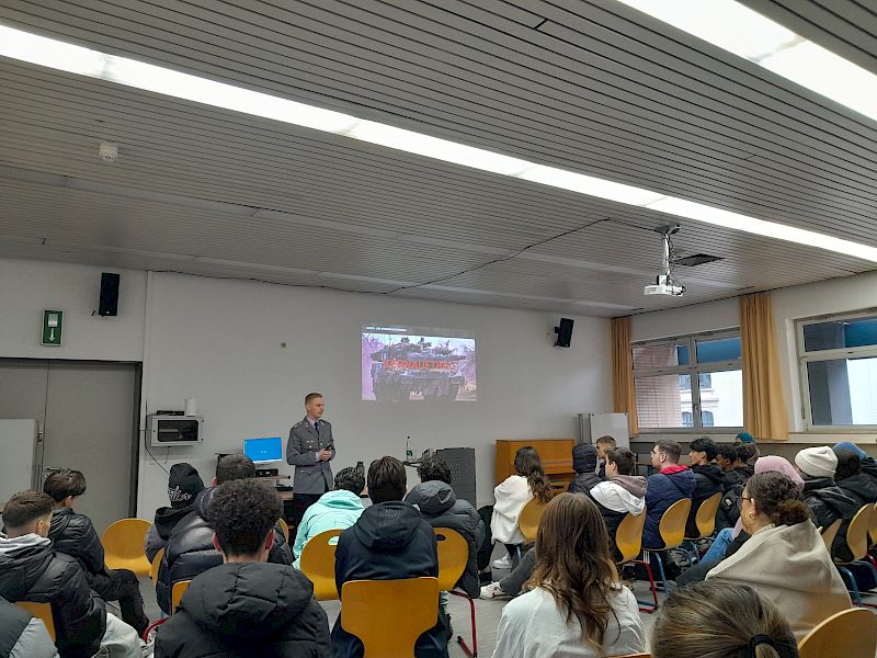 Wie geht es nach dem Abschluss der Schulzeit weiter? Eine Frage, die besonders die Schülerinnen und Schüler der 12. Klasse beschäftigt, geht es doch darum, den individuellen Weg und damit den Einstieg in die Arbeitswelt zu finden. Vor dieser Entscheidung steht immer eine gründliche Information über die verschiedensten Möglichkeiten. Eine in diesem Zusammenhang wieder vermehrt in den Fokus gerückte Möglichkeit stellt die Bundeswehr dar, ist sie doch nicht nur die Armee der Bundesrepublik Deutschland, viel mehr ist sie einer der größten Arbeitgeber im militärischen, aber auch im zivilen Bereich.