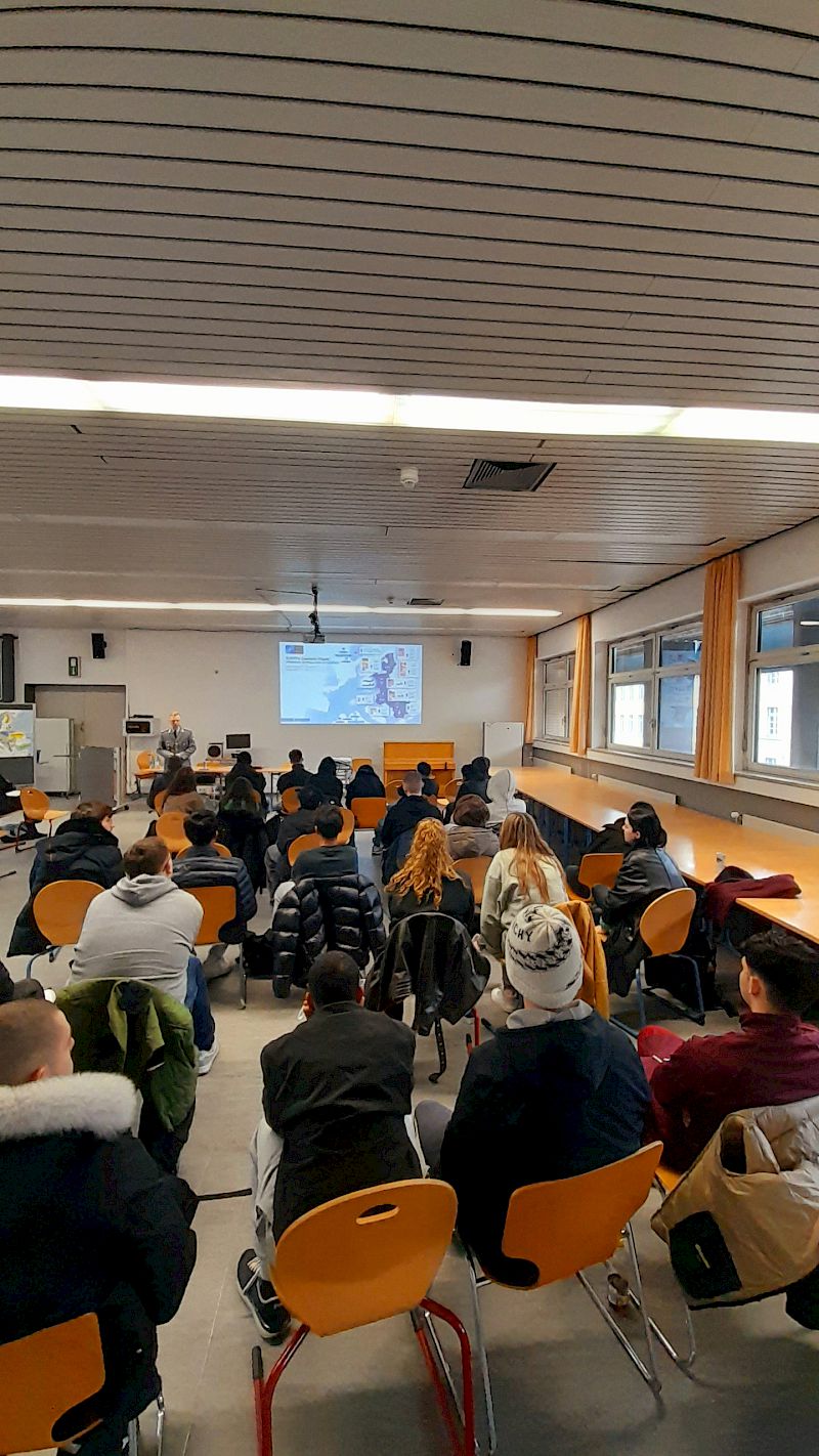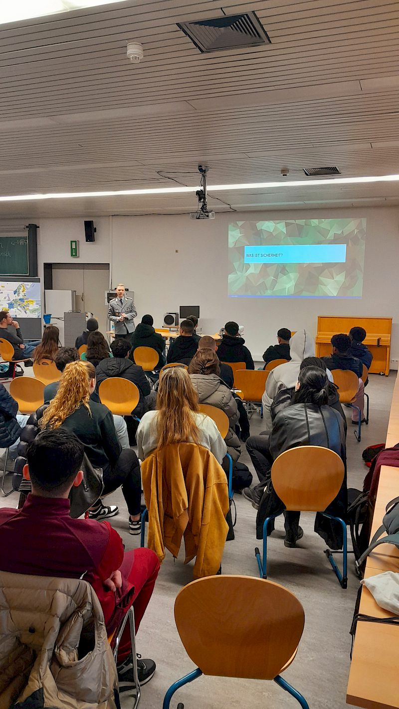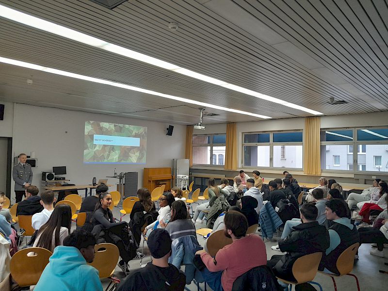 Dass diese Veranstaltung einen wichtigen Beitrag zur politischen Bildung darstellt, zeigte sich neben der regen Beteiligung der Schülerinnen und Schüler vor allem daran, dass viele von ihnen direkt im Anschluss die Gelegenheit nutzten, um mit dem Jugendoffizier direkt ins Gespräch zu kommen.