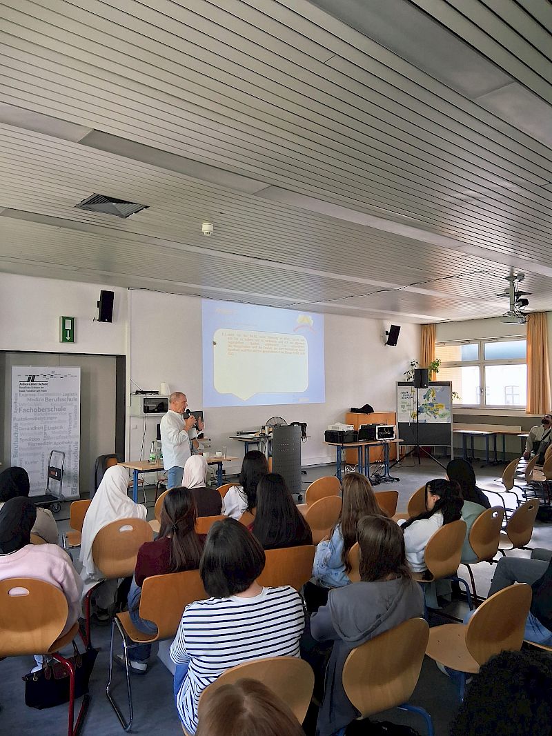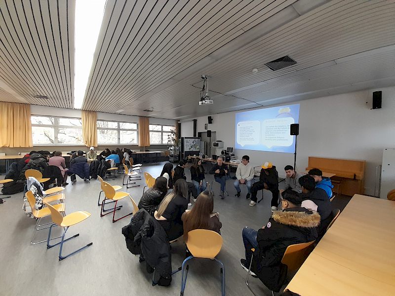 Komunikation ist alles, ohne Kommunikation ist alles nichts. Diesem Motto folgend besuchte Shai Hoffmann vom Berliner Trialog-Projekt der Israel-Pälastina-Bildungsvideos am gestrigen Donnerstag unsere Schule, um mit zwei FOS-Abschlussklassen über die Gefühle der Schüler:innen zur Konflikteskalation im Nahen Osten ins Gespräch zu kommen. Und es wurde mehr als das, es wurde ein Trialog, denn der Bildungsreferent und Sozialunternehmer mit israelischen Wurzeln dozierte nicht, sondern holte die Lernenden verschiedenster Religionen dort ab, wo sie stehen, mit all ihren Ängsten und Unsicherheiten in einer mehr als schwierigen Zeit.