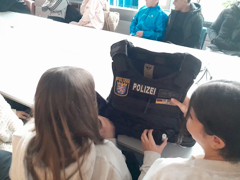 Alle Fragen wurden beantwortet und die Schüler bekamen einen ersten kleinen, aber sehr detailreichen Einblick in den Berufsalltag sowie die Einstellungsvoraussetzungen der Hessischen Polizei. Es wurde u.a. das Einsatzequipment und ein Einsatzfahrzeug besichtigt, bei der anschließenden Führung durch das Zentrale Polizeigewahrsam wurde es merklich still, zu interessant, informativ und berührend zugleich waren die Eindrücke.