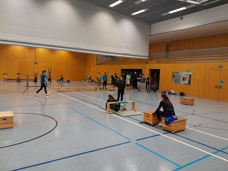 Der praktische Teil in Form des Probesporttests, der zu den obligatorischen Einstellungsvoraussetzungen zählt und bei dem die Schülerinnen und Schüler noch einmal vollen Einsatz zeigten, schloss den Informationstag ab.