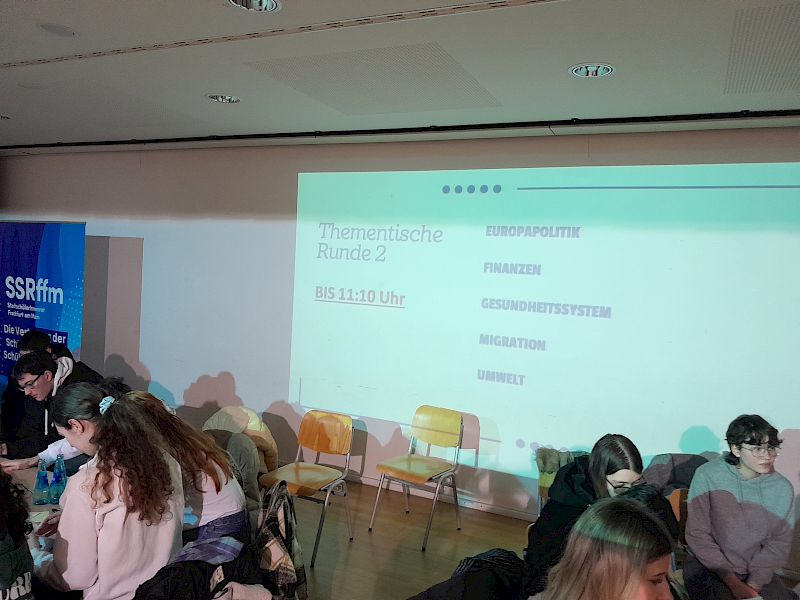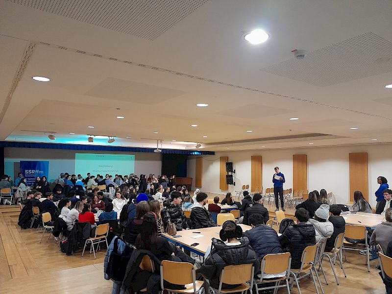 Wahlkampf, ein großes Wort. Duelle, Quadrelle im Fernsehen oder auf Social-Media, Wahlplakate, Walkampfstände sowie kleine Aufmerksamkeiten der Vertreterinnen und Vertreter der Parteien, die sich zur Wahl stellen, dies verbindet man am ehesten mit diesem Begriff. Dabei beschäftigt jede Wählerin und jeden Wähler immer wieder die Frage nach der individuellen Wahlentscheidung. So geht es auch der Mehrheit der Erstwählerinnen und Erstwähler, die am kommenden Sonntag zum ersten Mal an die Wahlurnen gerufen sind, um von ihrem Wahlrecht Gebrauch zu machen. Damit Wahlkampf nicht nur mit den oben genannten Begriffen assoziiert bleibt und die Wahlentscheidung fundiert getroffen werden kann, fand am heutigen Donnerstag in der Schule am Ried die bereits vierte, vom Stadtschülerrat Frankfurt am Main organisierte und durchgeführte, Informationsveranstaltung zur Bundestagswahl statt.