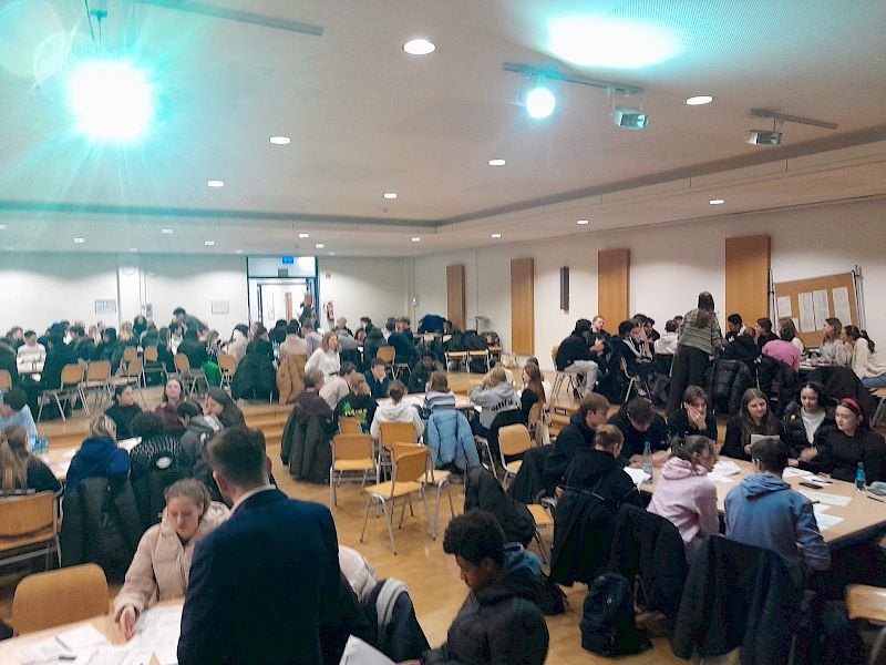 200 Schülerinnen und Schüler, darunter auch eine Abschlussklasse der 12. Jgst. der JLS konnten sich in Kleingruppen unter Anleitung und Moderation über die wahlentscheidenden Themen nicht nur informieren, es gab im Anschluss auch die Gelegenheit, mit den Wahlkreiskandidatinnen und Wahlkreiskandidaten ins Gespräch zu kommen und Fragen zu stellen.
