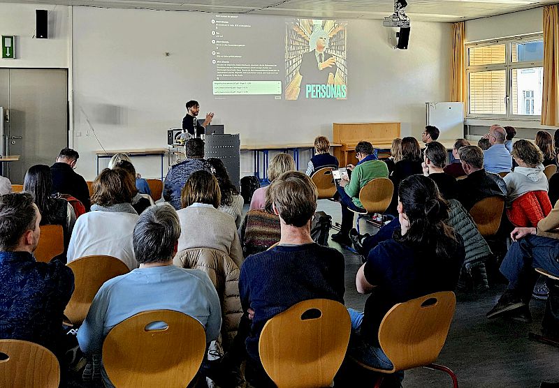 In einer gleichsam unterhaltsamen wie lehrreichen Keynote von Prof. Dr. Dengel, Inhaber der Professur für Informatikdidaktik an der Goethe-Universität, wurden unter dem Titel „Lehren und Lernen mit KI“ mithilfe autobiografischer Beispiele die Funktionen, im Sinne eines „Blickes unter die Motorhaube“, verschiedener Ebenen der KI-Tools (Sprachmodelle, Bilderkennung, Bildgeneratoren) erläutert und anschaulich dargestellt. Ebenso wurden auch die Probleme und Gefahren (Fake News, Stereotype, Filterblasen), die dieser Technologie inhärent sind, nicht verschwiegen.