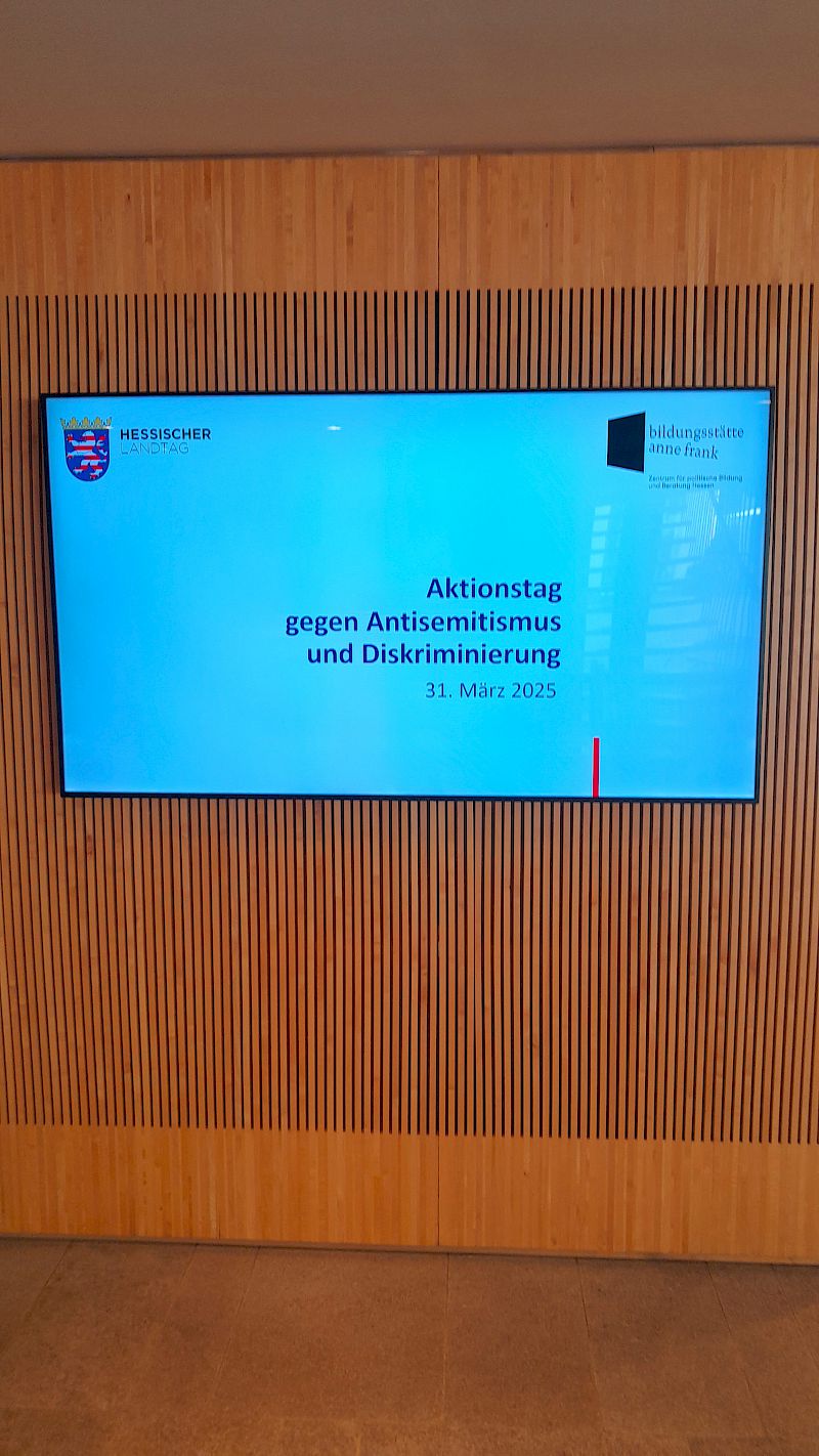 So ging es am heutigen Montag der Abschlussklasse FW31 im Hessischen Landtag, dessen Präsidentin, Frau Astrid Wallmann, zum Aktionstag gegen Antisemitismus und Diskrimierung in die Herzkammer der landespolitischen Demokratie nach Wiesbaden geladen hatte. Ein Herzensprojekt ihrerseits, wie sie bei der Begrüßung und unter Applaus der insgesamt drei anwesenden Schulklassen von verschiedenen beruflichen Schulen aus Frankfurt und Wiesbaden betonte.
