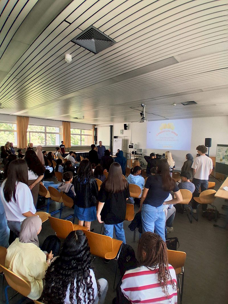 In einem vierstündigen Workshop, geleitet von erfahrenen Referentinnen und Referenten der Bildungsstätte Anne Frank, wurden die allzeit tagesaktuellen Themen anschaulich vermittelt sowie sowohl tiefgründig als auch interaktiv analysiert und damit ein wichtiger Beitrag zur Demokratiebildung geleistet.