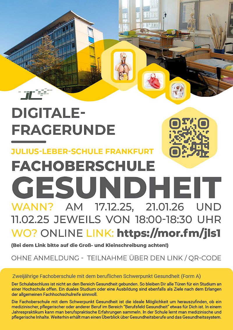 Die Fachoberschule baut auf dem Mittleren Abschluss auf und führt an der Julius-Leber-Schule mit den Schwerpunkten Wirtschaft und Verwaltung oder Gesundheit zur Fachhochschulreife.