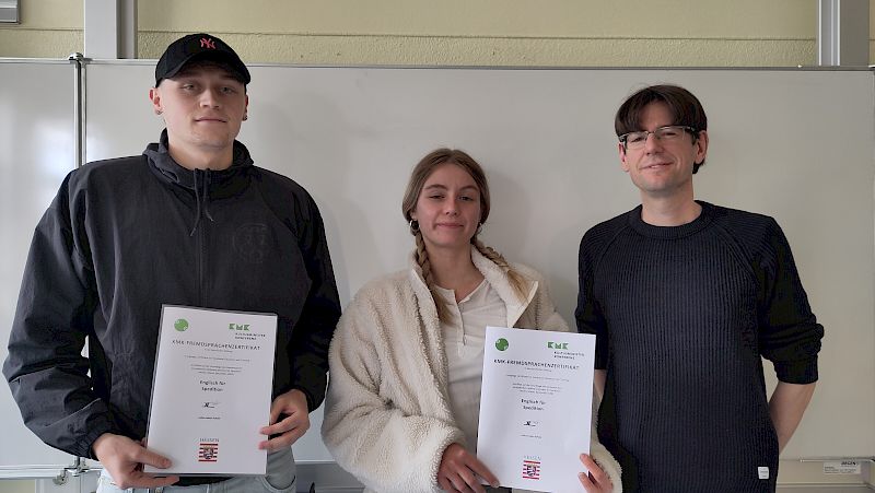 Seit diesem Jahr bietet die Julius-Leber-Schule erstmals wieder das freiwillige KMK-Fremdsprachenzertifikat (Englisch) im Ausbildungsbereich Spedition an. Martin T. und Lisa O. (SK34) haben zusammen mit fünf weiteren Prüflingen das Zertifikat erfolgreich bestanden. Die nächsten Prüfungen finden im März 2026 statt. Interessierte im Bereich Spedition wenden sich bitte an Herrn Salm.