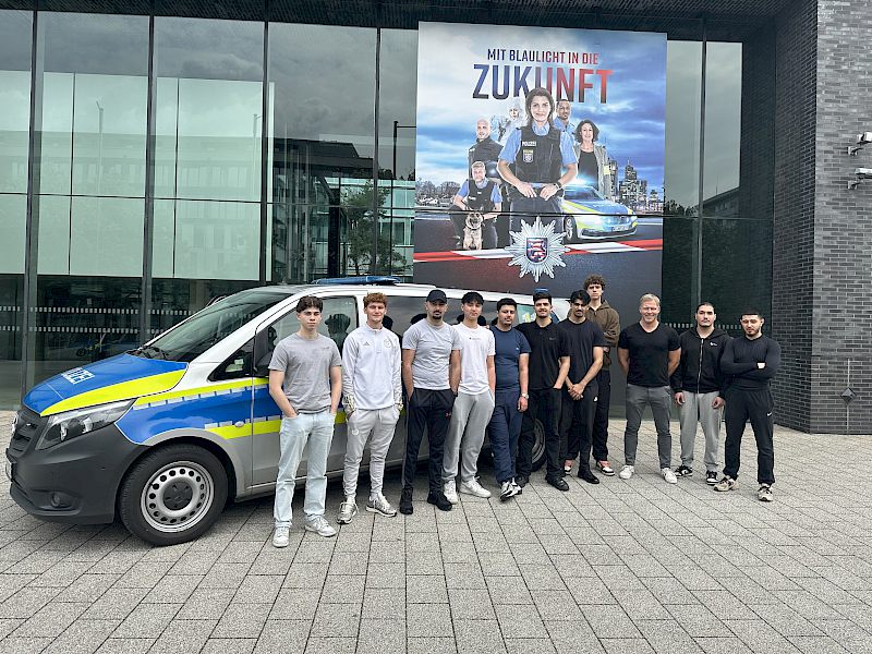 Der Satz "Kein Beruf wie jeder andere." ist mittlerweile zu einer fast gängigen Redensart geworden, tatsächlich gibt es aber wenige Berufe, auf die diese Aussage so exakt zutrifft, wie auf den Beruf des Polizeibeamten und der Polizeibeamtin. Um im Rahmen der beruflichen Orientierung einen Einblick in diesen zu erhalten und die vielfältigen Einsatzmöglichkeiten kennenzulernen, waren am heutigen Donnerstag zum nun schon vierten Mal einige sorgfältig ausgewählte Schülerinnen und Schüler der Abschlussklassen der Fachoberschule im Polizeipräsidium Frankfurt am Main zu Gast. Die Einstellungsberatung der Hessischen Polizei hatte zu einem Informationstag mit praktischem Anteil geladen und dieser hatte es in sich.
