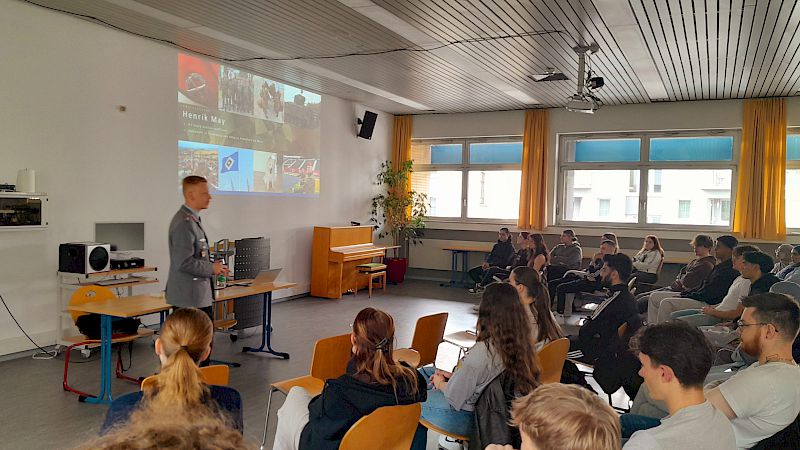 Um diesen wichtigen Auftrag zu erfüllen, war am vergangenen Mittwoch der für die Region zuständige Jugendoffizier des Bundeswehrlandeskommandos Hessen, Herr Olt. May, schon zum dritten Mal an der Julius-Leber-Schule zu Gast.
