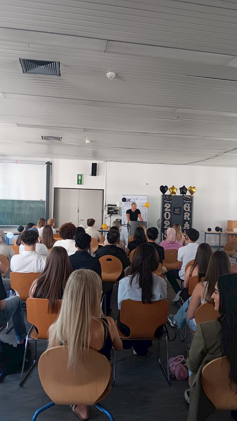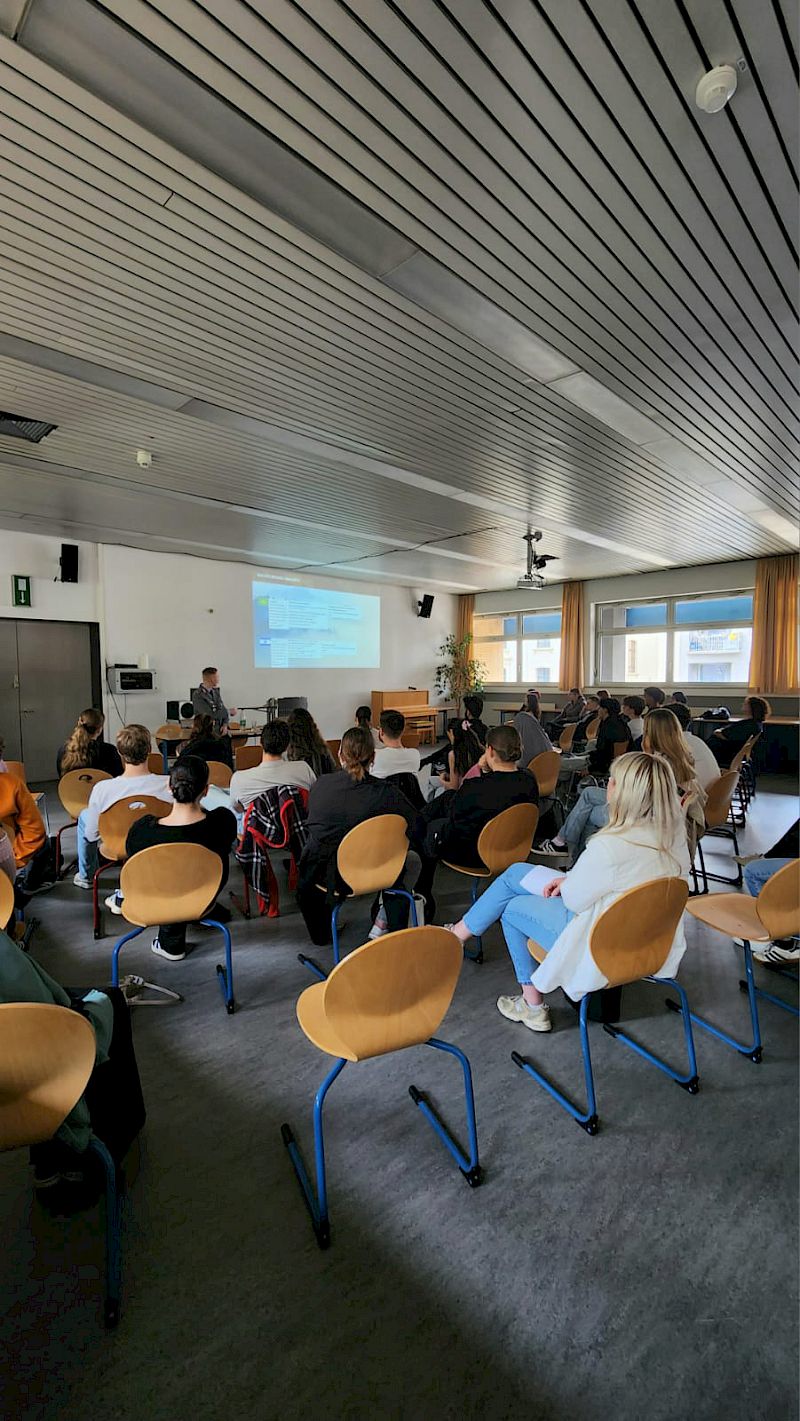 Zugleich kamen die Schülerinnen und Schüler zum ersten Mal mit dem Setting einer Vorlesung auf Hochschulniveau in Berührung, was ebenfalls eine wertvolle Erfahrung im Hinblick auf die berufliche Orientierung darstellt. Klares Fazit der Veranstaltung: Der Praxis-Profi darf und wird gerne wiederkommen.