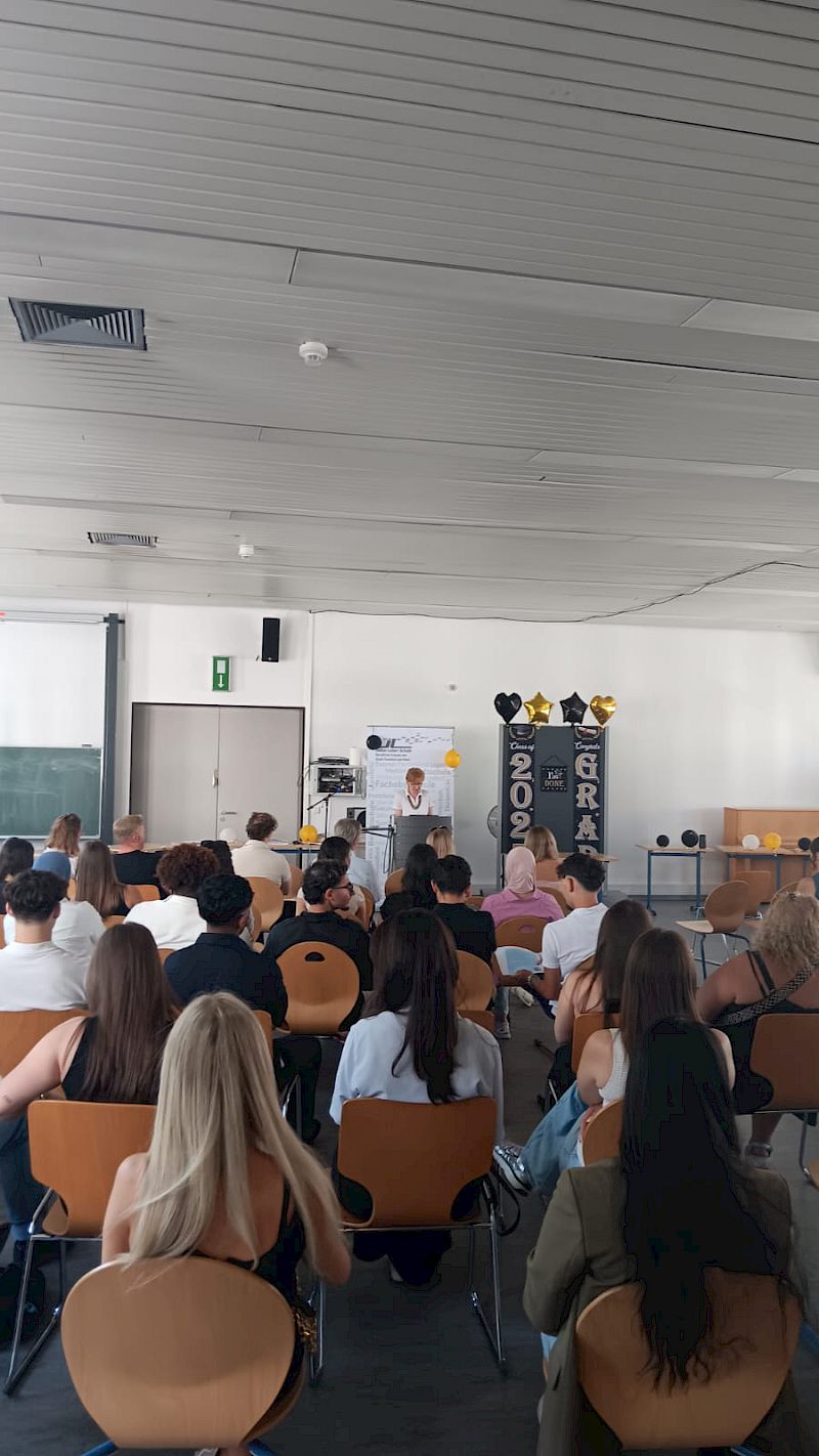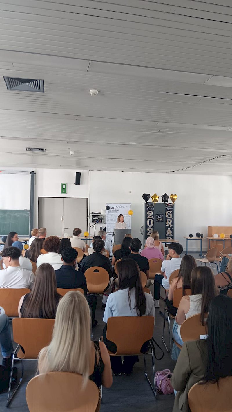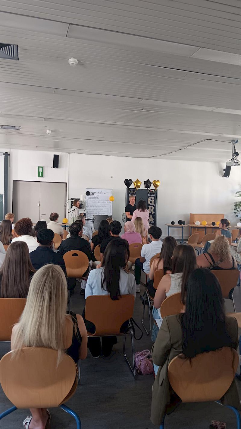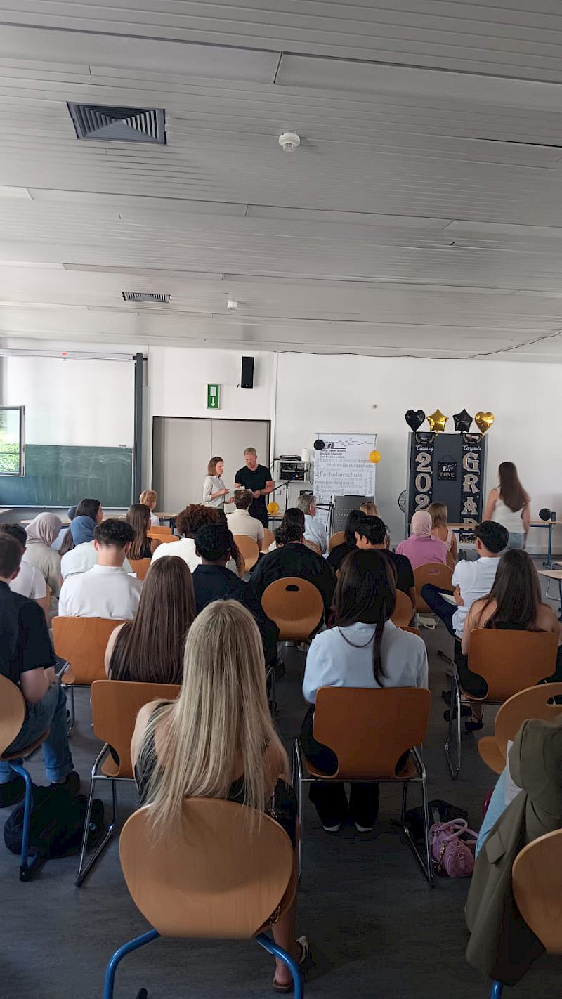 Das Ende des Schuljahres bedeutet auch immer das Ende einer Reise, in diesem Falle endete für die Schülerinnen und Schüler der 12. Jahrgangsstufe das Ende ihrer Schulzeit mit der feierlichen Übergabe der Zeugnisse der Fachhochschulreife, die am letzten Schultag u.a. im Multifunktionsraum stattfand.